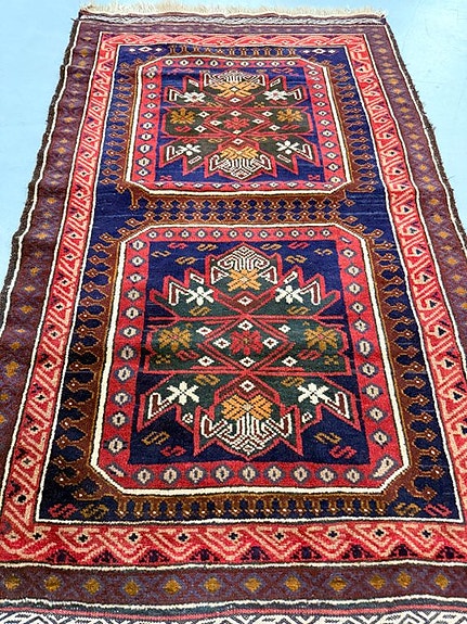 Kazak-tæppe fremstillet i Pakistan, håndknyttet af uld på bomuld, 115 x 82 cm, i meget god stand og professionelt rengjort. Klik på den blå "gå til varen" knap, for at købe eller byde på denne vare. Den samlede pris vil blive vist inden du afgiver dit bud.