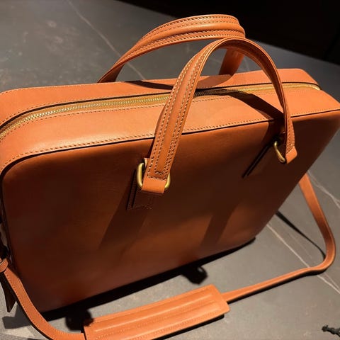 Udviklet af den anerkendte a.testoni udstråler denne luksuriøse dokumentmappe elegance og funktionalitet. Den slanke grå nuance, suppleret af et tidløst honningkage-mønster, vil uden tvivl imponere. Fremstillet af førsteklasses læder med en holdbar metalramme, tilbyder den både elegance og holdbarhed. Det rummelige indre, foret med et robust stof, kan komfortabelt rumme en bærbar computer og vigtige dokumenter, hvilket gør den til en ideel følgesvend for den kræsne professionel. Den har en sikker tryk-lås lukning, en justerbar rem til hænder-fri