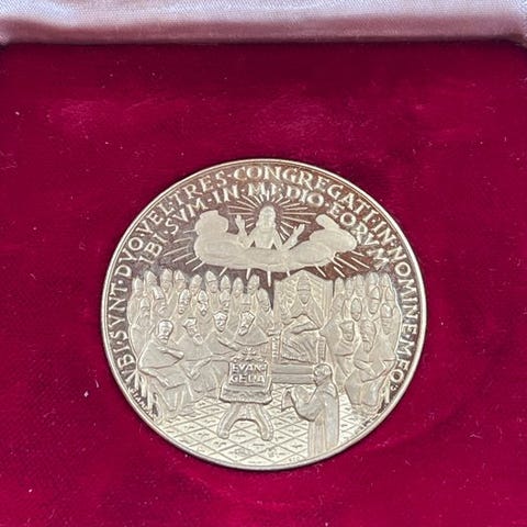 Gullmedalje i guld fra serien 'I Capi della Seconda Guerra Mondiale' (Ledere i Anden Verdenskrig), udstedt af Banco Italo-Venezuelano i 1957.