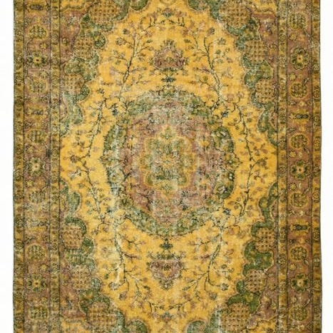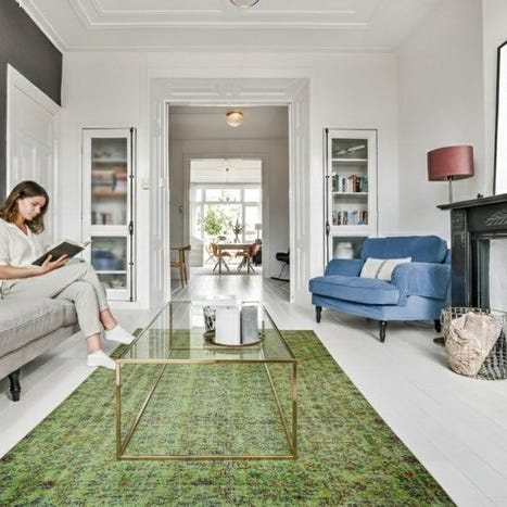 Grøn vintage tæppe håndvævet i Tyrkiet i det 21. århundrede, model Green vintage, uld på bomuld, 285 × 185 cm, i meget god stand, professionelt renset, med certifikat. Klik på den blå "gå til varen" knap, for at købe eller byde på denne vare. Den samlede pris vil blive vist inden du afgiver dit bud.