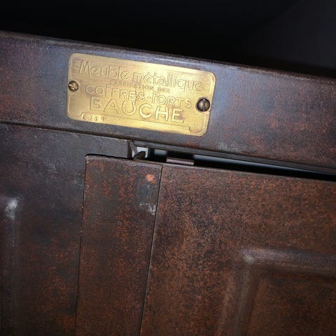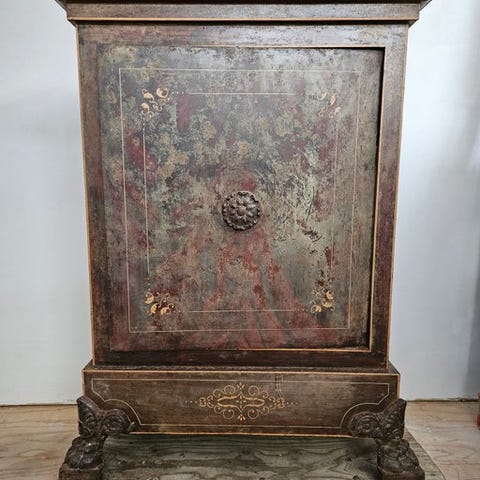 Sikkerhedsskabet udbydes til auktion i den tilstand, det blev fundet, for at bevare dets skønhed og originalitet. Se foto.