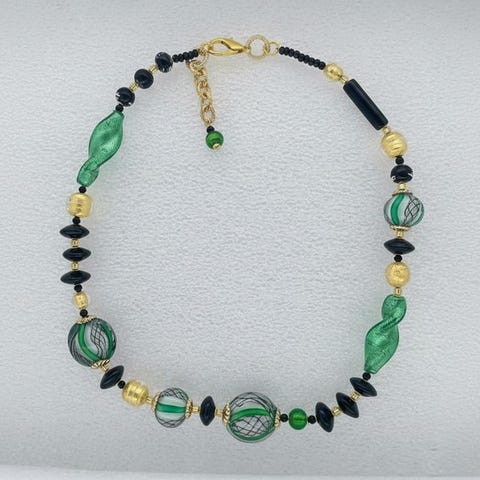 Murano-glas halskæde, sort baggrund.