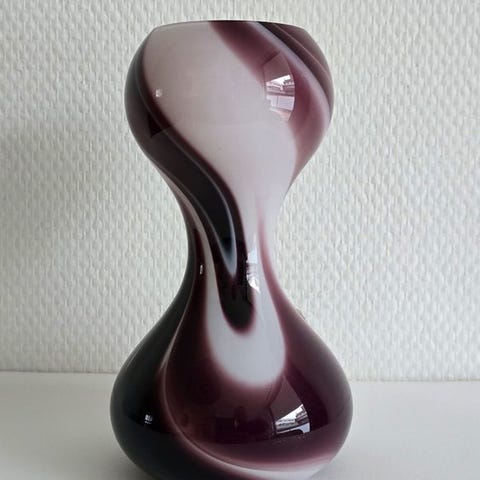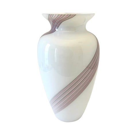 Murano satinato vase af Carlo Moretti, ca. 1960, glas, dusty rose med hvid indvendig indpakning, højde 13 cm, diameter 14 cm, vægt 600 g, i god vintage stand med let slides og uden chips eller sprækker, med original etiket. Klik på den blå "gå til varen" knap, for at købe eller byde på denne vare. Den samlede pris vil blive vist inden du afgiver dit bud.