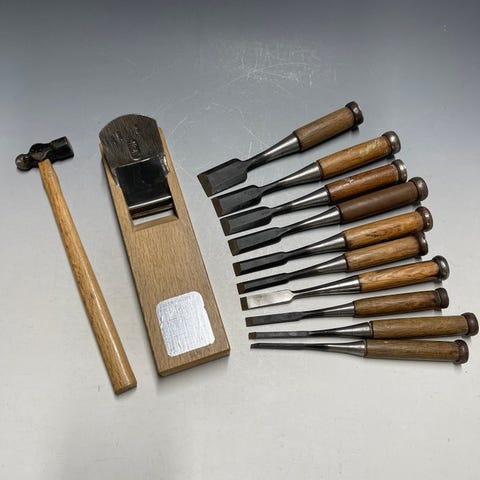 Dette er et sjældent sæt af traditionelle japanske træbearbejdningsværktøjer, inklusive 11 specialiserede nomi/鑿 og 10 kanna/鉋, fremstillet i Meiji-perioden til midt-Showa-perioden.