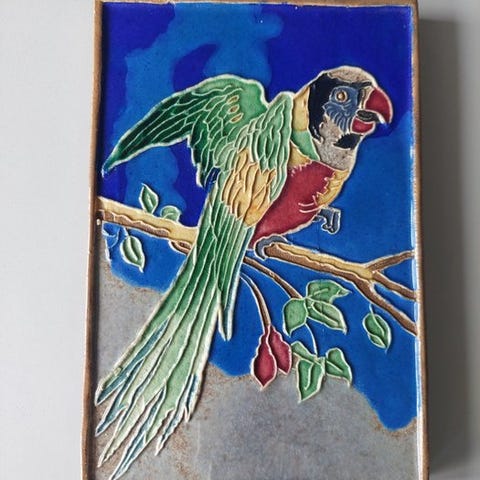 Westraven Cloisonné flise af en Putter, stentøjs keramik fra Nederlandene, dateret ca. 1930–1940, 15 cm høj, 10 cm bred og 1 cm dyb, i god stand med små aldersrelaterede tegn og pletter. Klik på den blå "gå til varen" knap, for at købe eller byde på denne vare. Den samlede pris vil blive vist inden du afgiver dit bud.