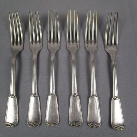 Christofle - Gaffel - Sæt af 12 middagsgafler model Pompadour - Forsølvet