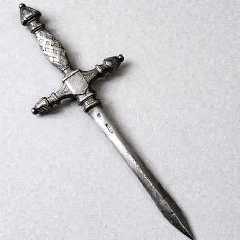 Fremragende sæt af fire knivholdere i den originale opbevaringsboks.