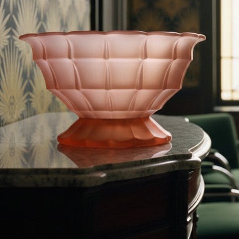 Sjælden Val Saint Lambert Art Deco glaskurv - 'Panier Cyclamen' (1935)