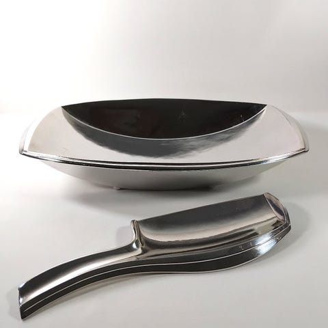 Designet har et slående relief af stiliserede krysantemum blomster, der fremviser den geometriske elegance og botaniske inspiration, som er typisk for