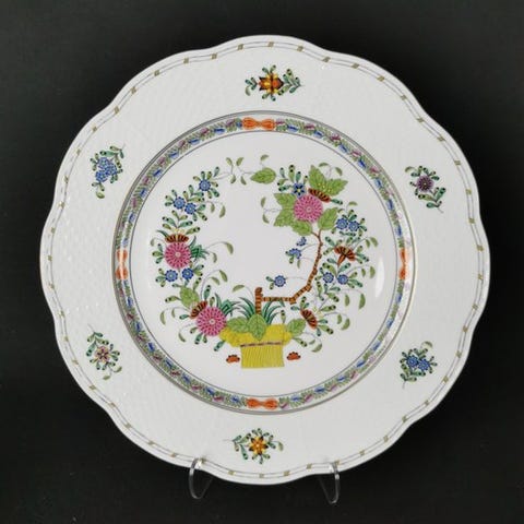 Kunstværk stor midterstykke/kurv med håndtag, påførte roser og blade, Limited Edition produceret af Herend - 'Chinese Bouquet Apponyi Green' Collection, ekstremt sjældent, i fremragende til næsten perfekt stand.