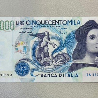 Italiensk republik sedel 10.000 lire, dekret 23.03.1961 Carli/ripa