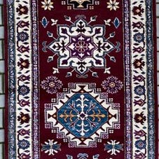 Dette er et håndknyttet østligt tæppe, lavet af holdbare, naturlige materialer. Måden det er vævet på, og mangfoldigheden i mønstrene gør dette tæppe til et unikum og understreger det autentiske og håndværksmæssige karakter.