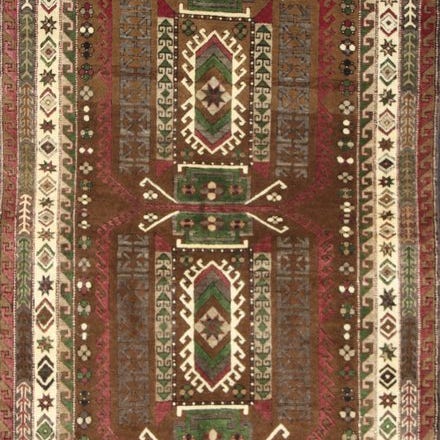 Dette er et håndknyttet østligt tæppe, lavet af holdbare, naturlige materialer. Måden det er vævet på, og mangfoldigheden i mønstrene gør dette tæppe til et unikum og understreger det autentiske og håndværksmæssige karakter.
