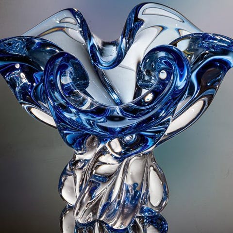 ParSomersso glasvaser i tre farver, ca. 1950–1960, to stykker: en pyramidale facets vase 21 cm høj (8,5 × 8,5 cm) og en blå blokvase 15 cm høj (4,5 × 4,5 cm), farver rubinrød, ambergul og transparent blå, i god stand med mindre aldersmærker og pletter. Klik på den blå "gå til varen" knap, for at købe eller byde på denne vare. Den samlede pris vil blive vist inden du afgiver dit bud.