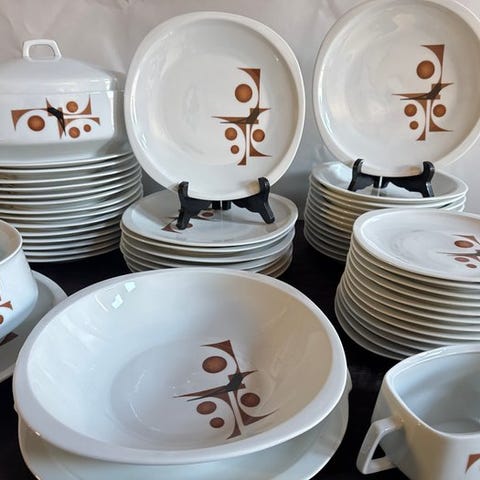En fransk porcelæn med bohemisk finish er denne luksusserie fra mærket i en ultra blank finish, kontrasterende med kanter og mønster i model Torsé, med guldrammer fra anden halvdel af det 20. århundrede – Limoges, Frankrig. Ægthedsbeviser er til stede på alle bunden.