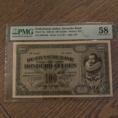 3 billetter af 100 gulden med stigende efterfølgende serienummer.