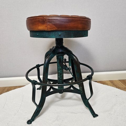 Flot industrielt justerbart skabsel i højden, maks. 68 cm, min. 55 cm, sæde diameter 34 cm, i fremragende stand.