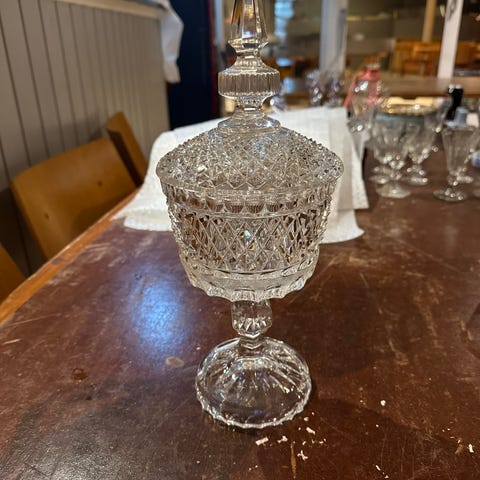 Elegant bonbonnière eller dækket skål i skåret krystal