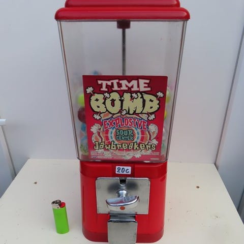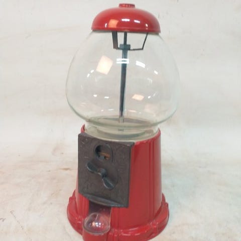 Vintage tyggegummimaskine. Årtal; 50'erne. Stand; se foto, (har brugsspor og nøgler mangler, uafprøvet). Vil blive omhyggeligt pakket og sendt med anbefalet post.