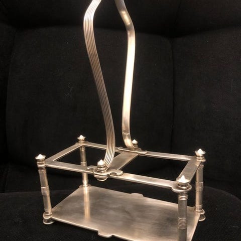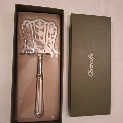 Oval, hul plade i nikket metal punslet med Alfenide og Christofle.