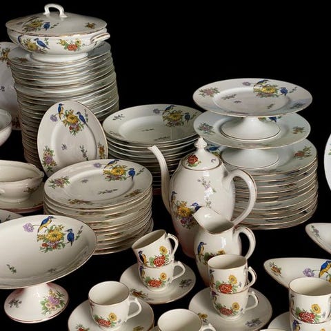 Smukke porcelænsservice fra Limoges, produceret af det prestigefyldte hus L. Bernardaud & Cie, en af de mest anerkendte producenter i Limoges siden slutningen af det 19. århundrede.