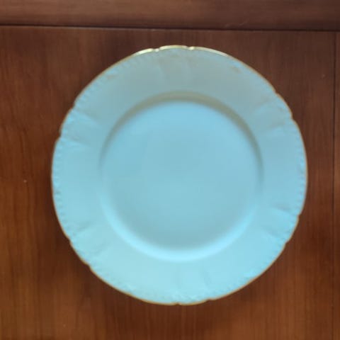 Disse tallerkener har en smuk kant med foden, fremhævet af en mat gulddekoration, påført i to lag, og derefter brunet med agat, en traditionel teknik, der bruges til at opnå en rig glans og en holdbar finish.