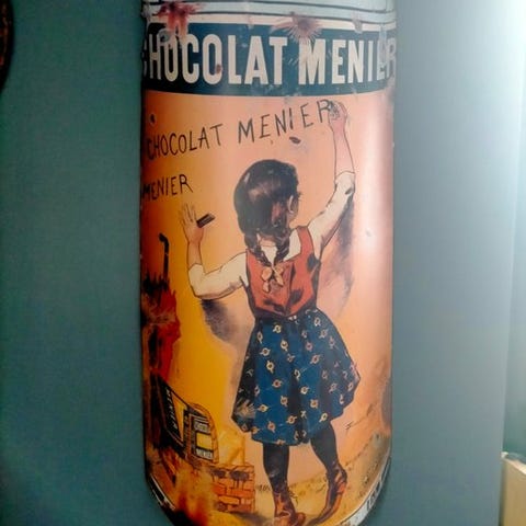 CHOCOLAT DELESPAUL - HAVEZ, designet af DELESPAUL, fremstillet i Frankrig, af stål med emalje, måler 60 cm × 42 cm × 2 cm og vejer 1,5 kg, original/officiel del i tilstand ret god med intens brug og eventuelle mindre mangler, ca. 1925–1932. Klik på den blå "gå til varen" knap, for at købe eller byde på denne vare. Den samlede pris vil blive vist inden du afgiver dit bud.