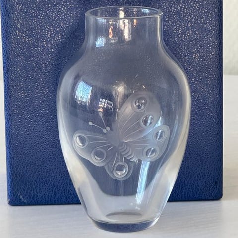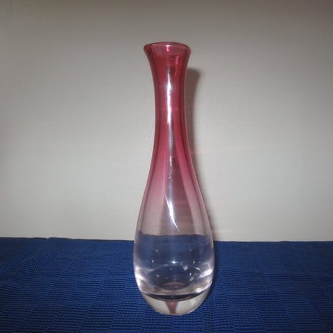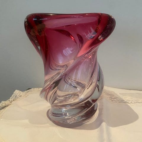 Et enkelt Val Saint Lambert blykrystalvase, 23 cm høj og 17 cm i diameter, vægt 4,4 kg, med rød kant, underskrevet Val Saint Lambert ved syregravering, dateret ca. 1930–1950, i meget god vintage stand med let brugsspor. Klik på den blå "gå til varen" knap, for at købe eller byde på denne vare. Den samlede pris vil blive vist inden du afgiver dit bud.