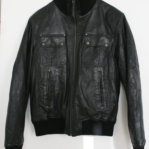 Modellen er en sort pilotjakke, der aldrig har været brugt.
