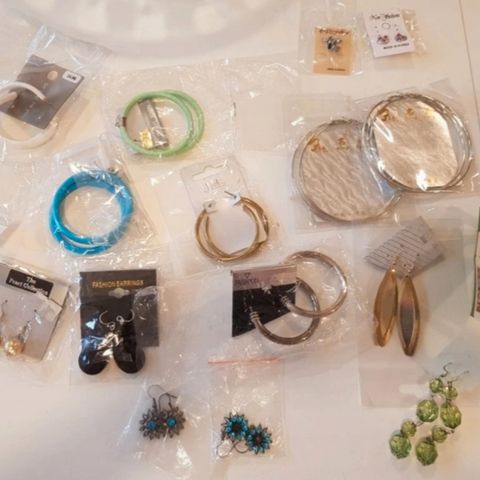 Jeg har udover øreringe, en masse andet nyt, som halskæder, kasketter, tørklæder, tasker, solbriller, nøgleringe osv .