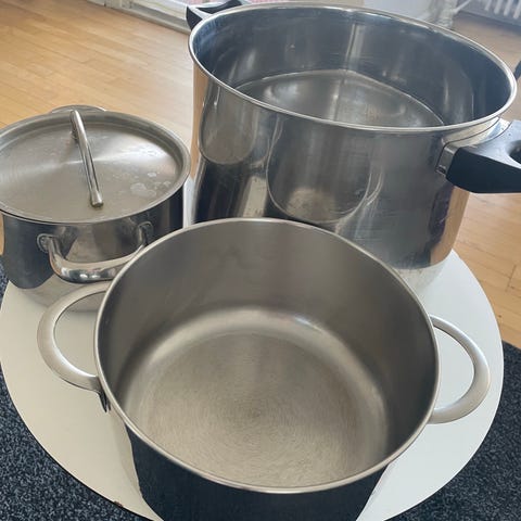 Raadvad gryde med låg (21 cm i diameter) og kasserolle (13 cm i diameter). Helt nye.
