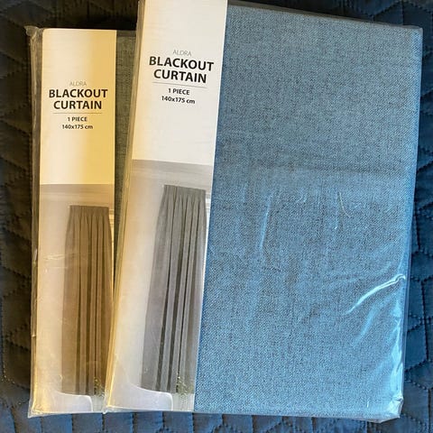 Hvert mørklægningsgardin måler 140 cm i bredden (x2)