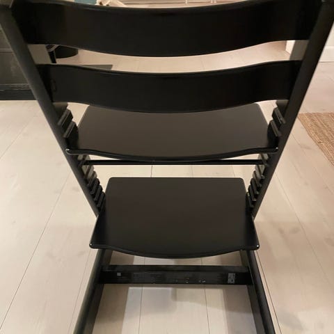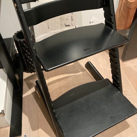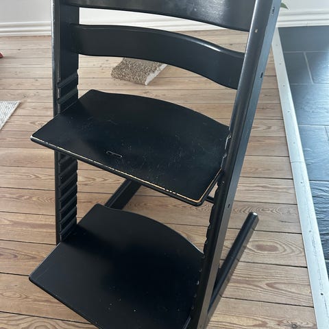 Stokke højstol i sort træ. Højstolen er designet til børn og kan justeres i både sæde- og fodstøttehøjde for at tilpasse sig barnets vækst og behov. Den fremstår stort set som ny, er i virkelig pæn stand. Stolen er den nyeste model fra Stokke.