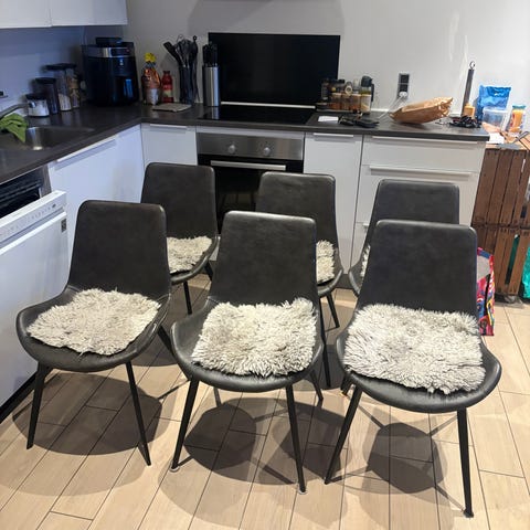 I pæn stand, siddehøjde 45 cm, sælges samlet