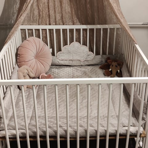 Få skrammer i malingen, se billeder, men overordnet set i god stand og klar til flere babyer.
