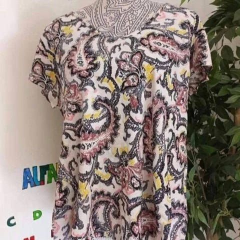 36. Sød og elegant top fra Masai i et smukt grønt mønster med hvide blomster. Toppen har korte ærmer og en rund halsudskæring. Den er perfekt til både hverdag og fest. Størrelse small