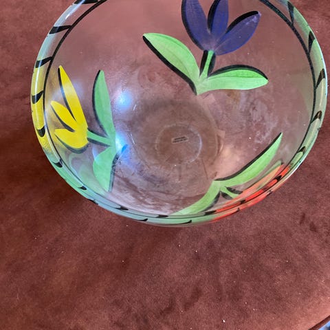 Håndmalet vintage glaspuster design bordskål, krystalskål med kønne glade røde tulipaner fra start 90'erne. Tulipa - Tulipan / RØD + HVID