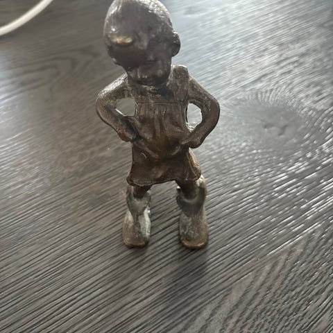 Sæt bestående af to metal musikfigurer, hvor den ene spiller trommer og den anden spiller guitar. Figuren med trommesæt har tre trommer. Kom med et bud. Sælges samlet eller enkeltvis. Prisen er pr stk.
