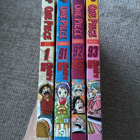 Jeg sælger bind 1-37 af carlsen mangas danske oversættelse af Ehchiro Odas One Piece.