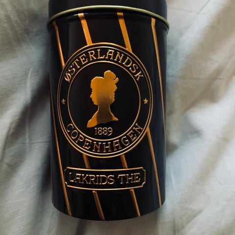 Østerlandsk Harlekin Tea dåse fra Østerlandsk (str. Ø 8,5 cm længde 14,5 cm)