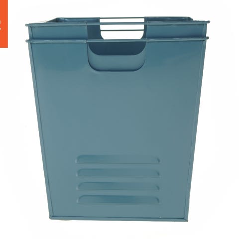 Vævet opbevaringskurv i grå farve med en størrelse på 32,5x27 cm. Den har en metalkrog til ophængning og et mærkat med 'home' skrevet på den ene side. Kurven er ideel til opbevaring af diverse små genstande eller til organisering i hjemmet.