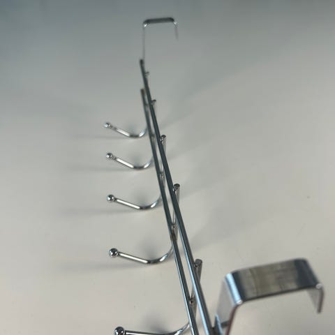 Denne sort dørkrog er designet til at hænge over en dør og har fire knager til at holde forskellige genstande såsom jakker, tasker eller hatte. Dørkrogen er konstrueret af metal og har en simpel, moderne stil, der passer i de fleste indretningsmiljøer. Den er 29 cm lang og 18 cm bred.