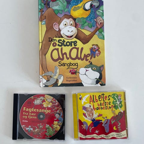 Kuffert med Åh Abe sangkort. Sæt med 25 kort, som indeholder illustrationer og sangtekster til børnesange. Nærmest aldrig brugt, så ser ud som ny.