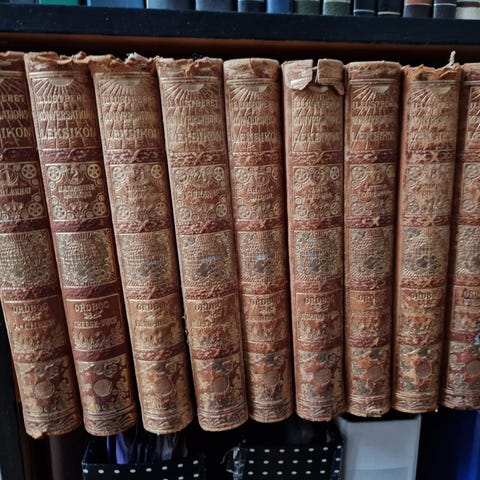 Blandet udvalg af flotte gamle bøger med forskellige omslag, i forskellige farver og størrelser. De kan både bruges til at pynte på en bogreol og naturligvis også læses. 30 kr stk eller 300 for alle 12.