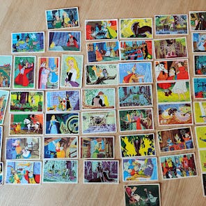 Så vidt jeg kan se, er alle samlekort der. Desværre har en tidligere ejer malet de to første sider, se fotos. Resten af siderne er normale. Navn på tidligere ejer er skrevet i starten af albummet