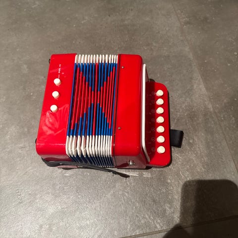 Weltmeister Stella accordeon i rød farve. God charmerende lyd - fin stand. Inklusiv remme og transportkasse. Skal afhentes og betales på adressen i Søborg
