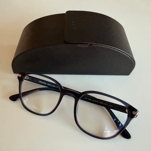 Prada brillestel med styrke på, ved ikke hvor meget er det, men det er minus styrke, fremstår som ny, sender via postnord