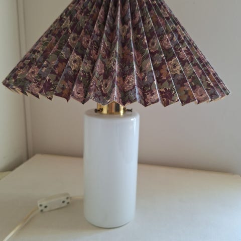 Bordlampe hvid med blomstret skærm ,