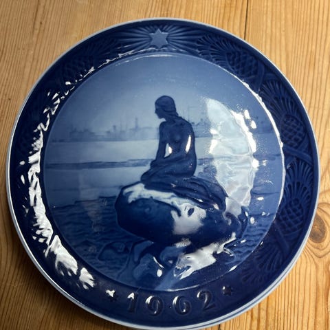 Royal Copenhagen Juleplatte 1955 porcelæn blå hvid