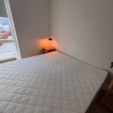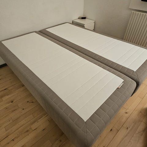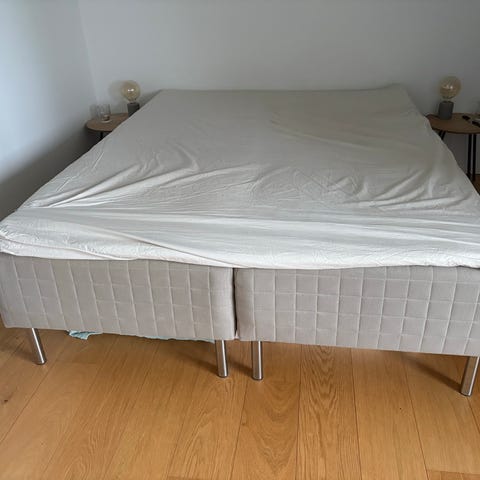 Flot og velholdt dobbelt boksmadras seng fra IKEA. Meget lidt brugt, da den kun har stået i et gæsteværelse. Fremstår i rigtig god stand. Klar til brug. Kvittering haves og medsendes.